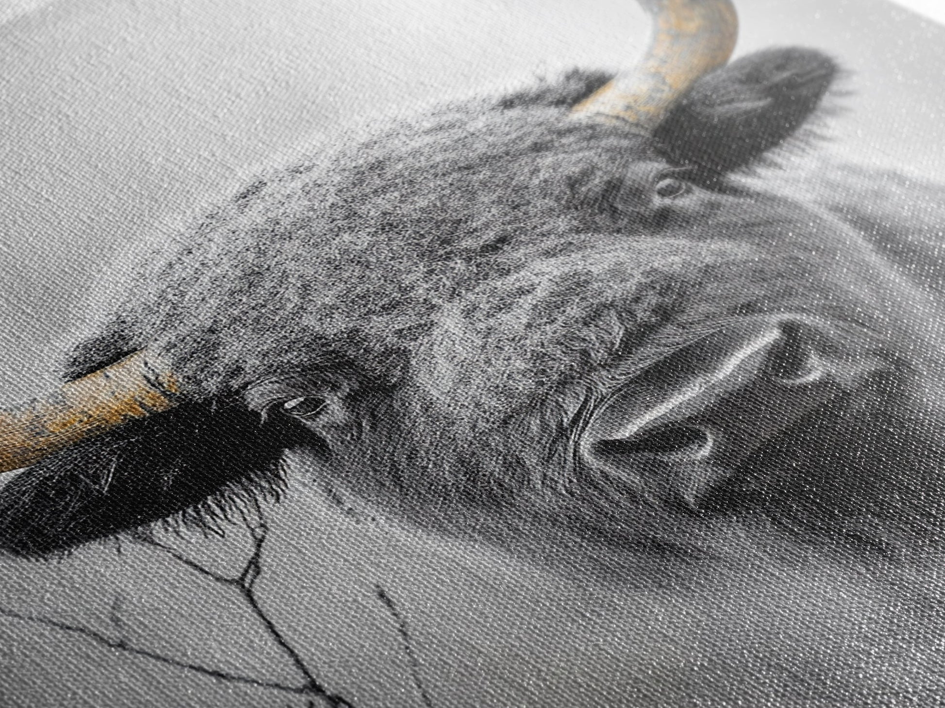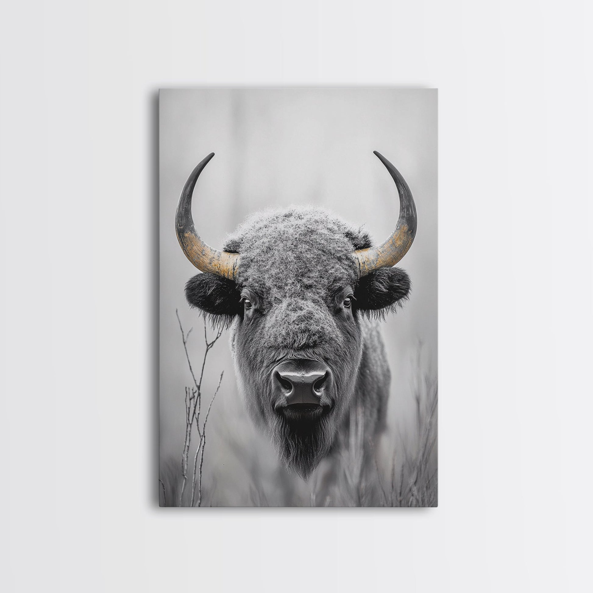 Bison, buffalo art, wildlife painting, framed canvas print, rustic decor, western wall art, moody nature, farmhouse animal art, southwest