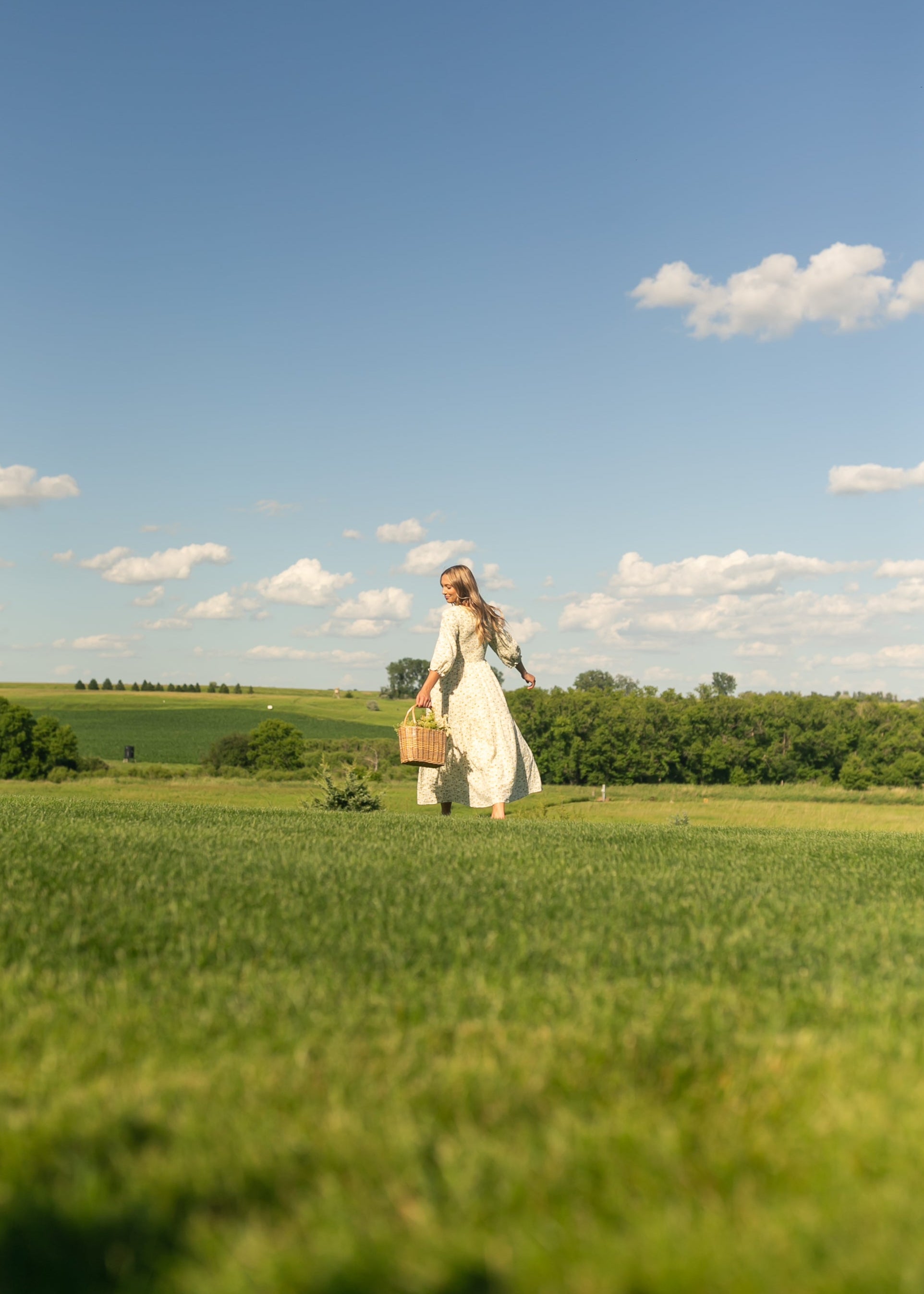 The Flora 3/4 Puff Sleeve Smocked Midi Dress is an Inherit Design that is perfect for any occasion! This dress features a modest v-neck, 3/4 puff sleeves, and a smocked bodice for a flattering and comfortable fit. The allover floral pattern adds a touch of ethereal elegance, making this dress perfect for a family photos, church, or any other special event. The midi length makes it versatile and suitable for a variety of body types, with plus sizes available. This beautiful feminine dress is a must-have for any wardrobe!
