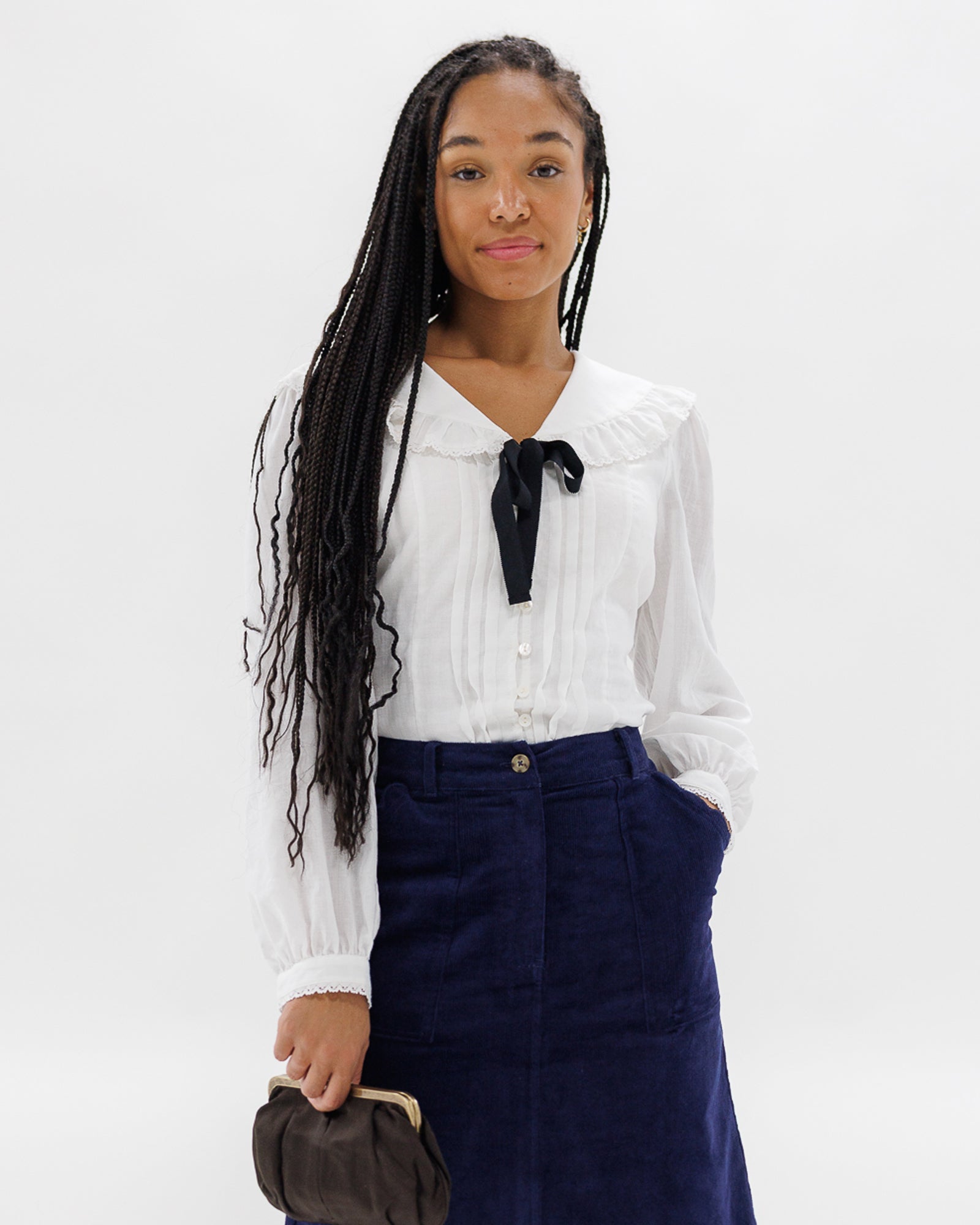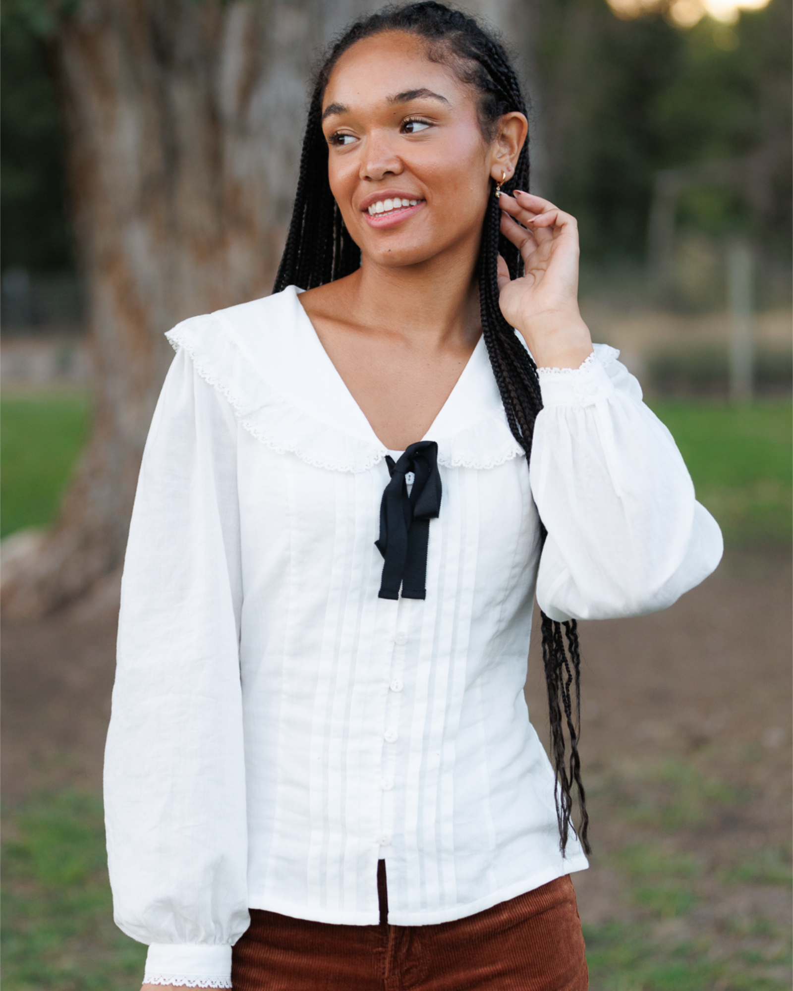 - Peter Pan collar with front ties