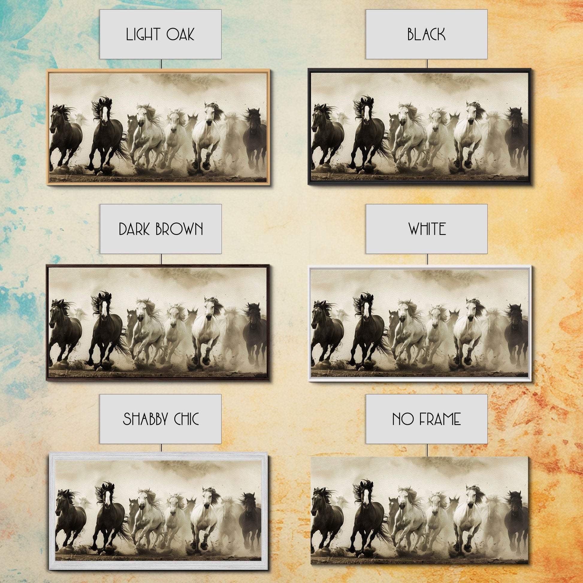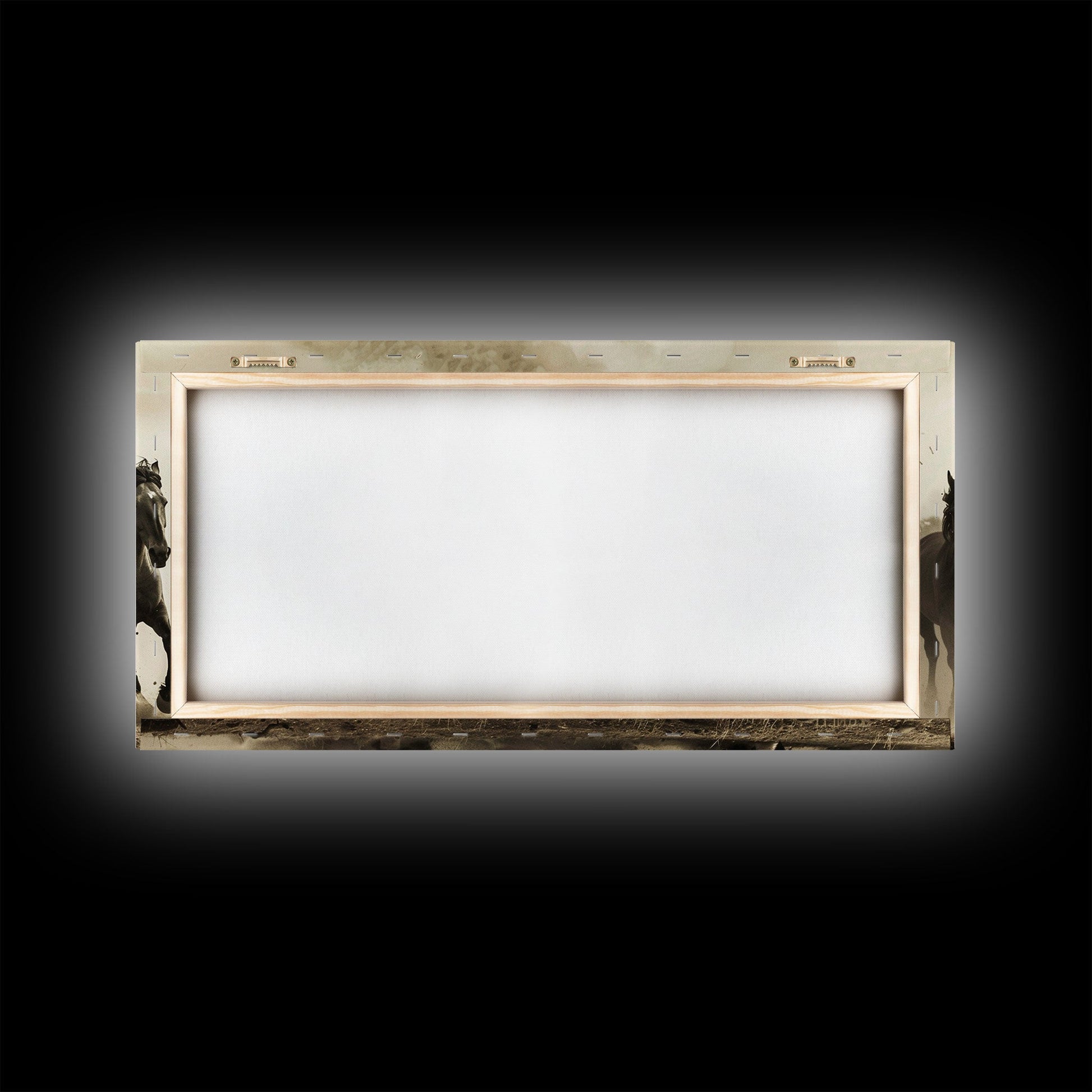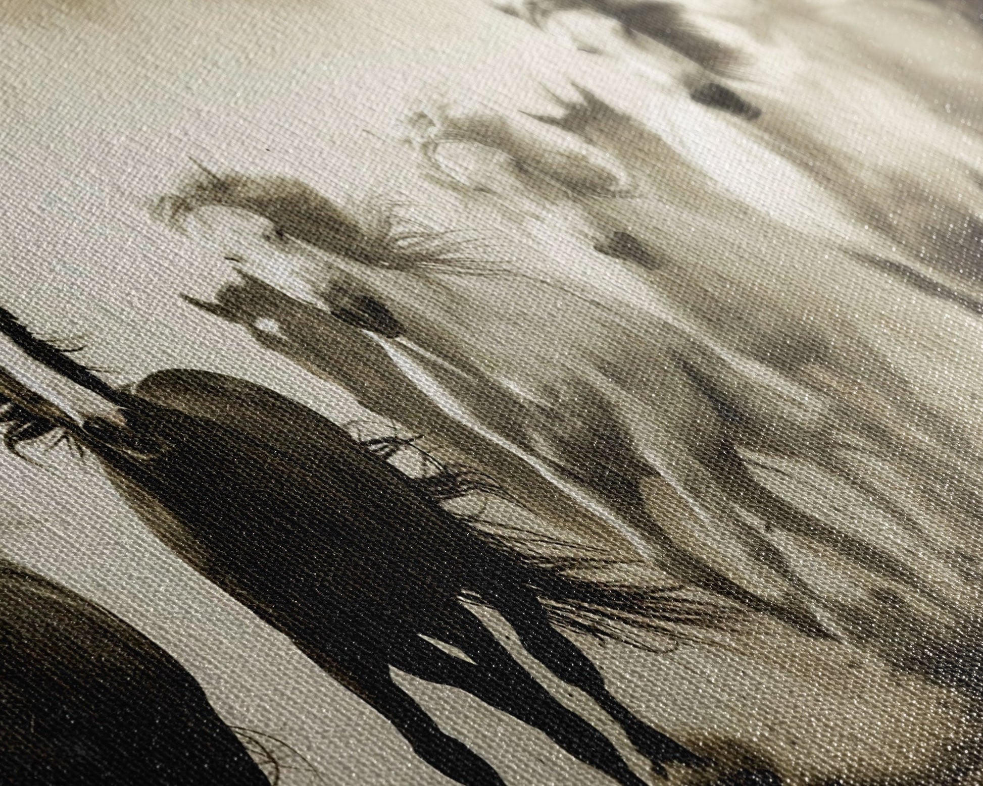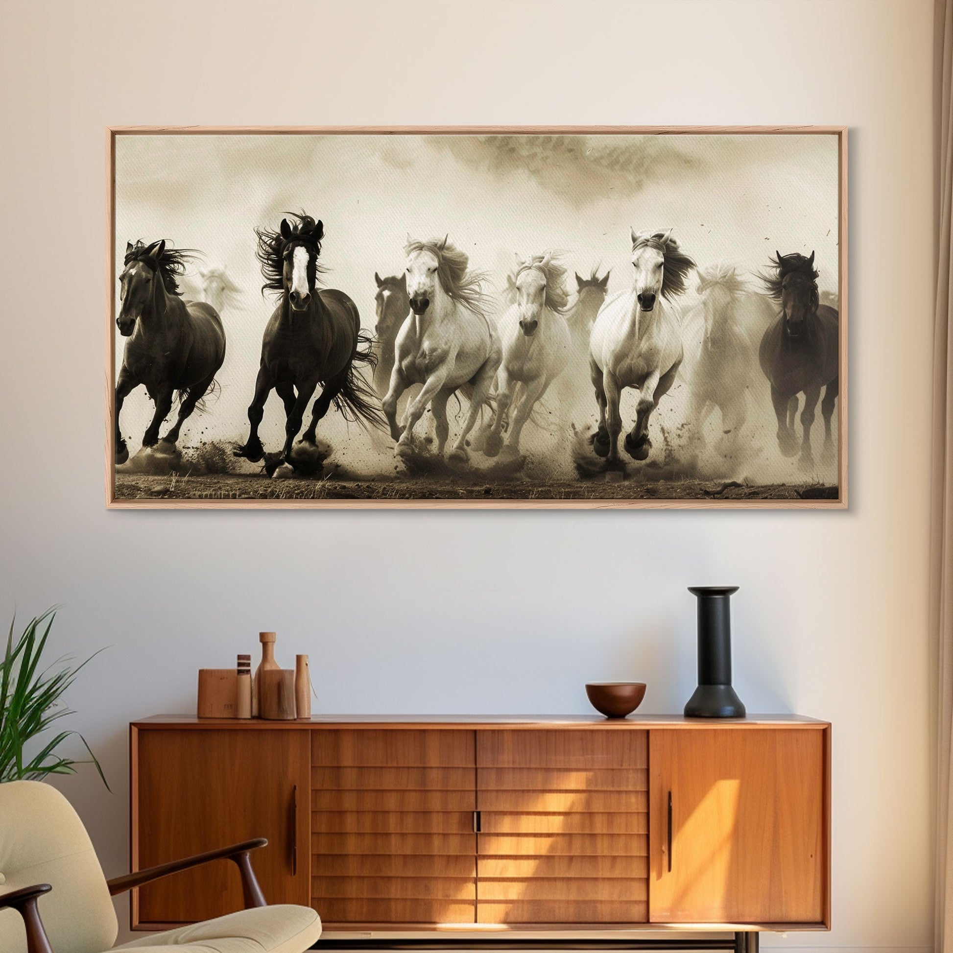 Majestic Running Horses in Dusty Field, Framed Canvas Print, Western Wall Art, Living Room Decor, Nature Scene, Horse Art