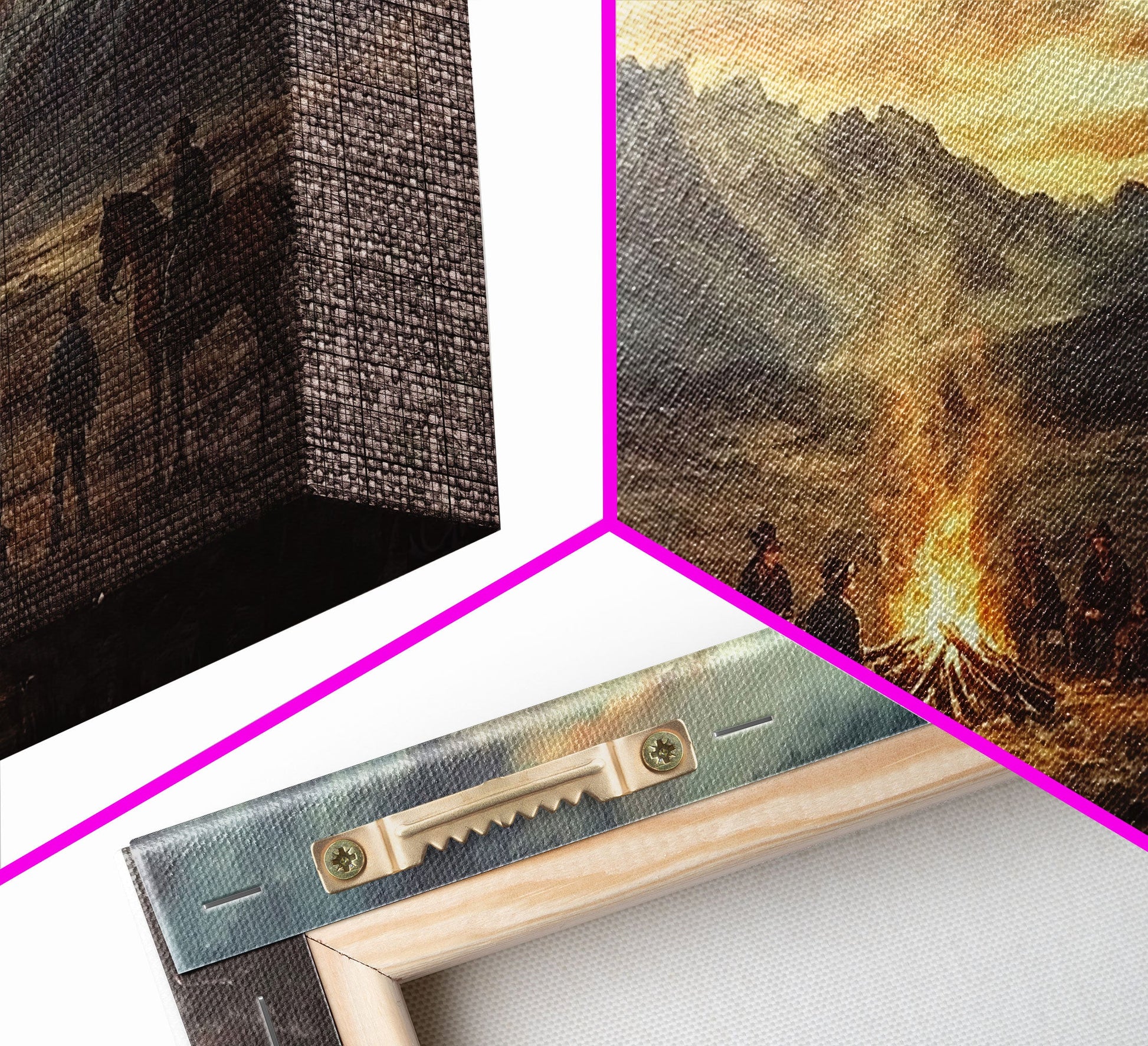 Sunset Cowboys Around Campfire Framed Canvas Print Western Scenic Art Perfect Winter Wall Decor and Rustic Mountain Cabin Art